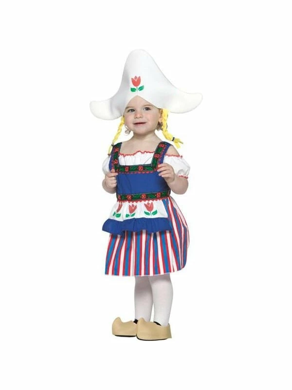 Welcome to Holland. Our Dutch Girl Costume is just too cute for your baby. This is a small toddler size 1T-2T. This little Netherlander is a fun family costume idea. put on a pair of wooden shoes, too.