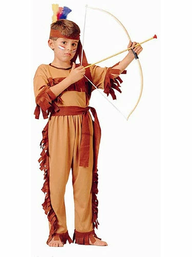 Our child’s native american warrior costume includes top, pants, sash and headband