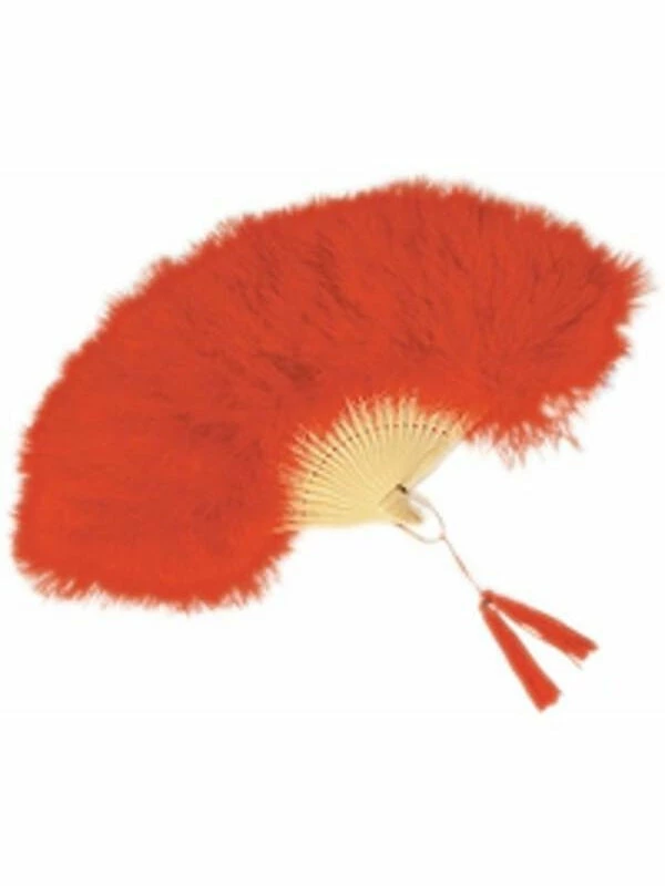 - Red marabou feathered hand fan