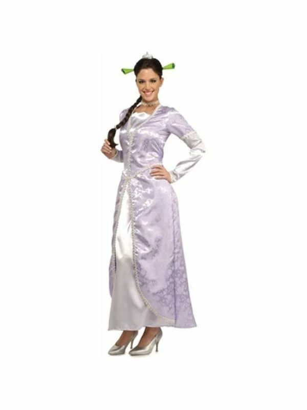 Our women’s Princess Fiona dress is from the popular film Shrek the Third. This princess outfit makes a great couple costume idea along with any of our adult Shrek costumes. Also for new moms try adding any of our baby Shrek costumes for a funny mommy and baby costume theme. For women that wear a smaller dress size this outfit also makes a great maternity costume for expecting mothers.