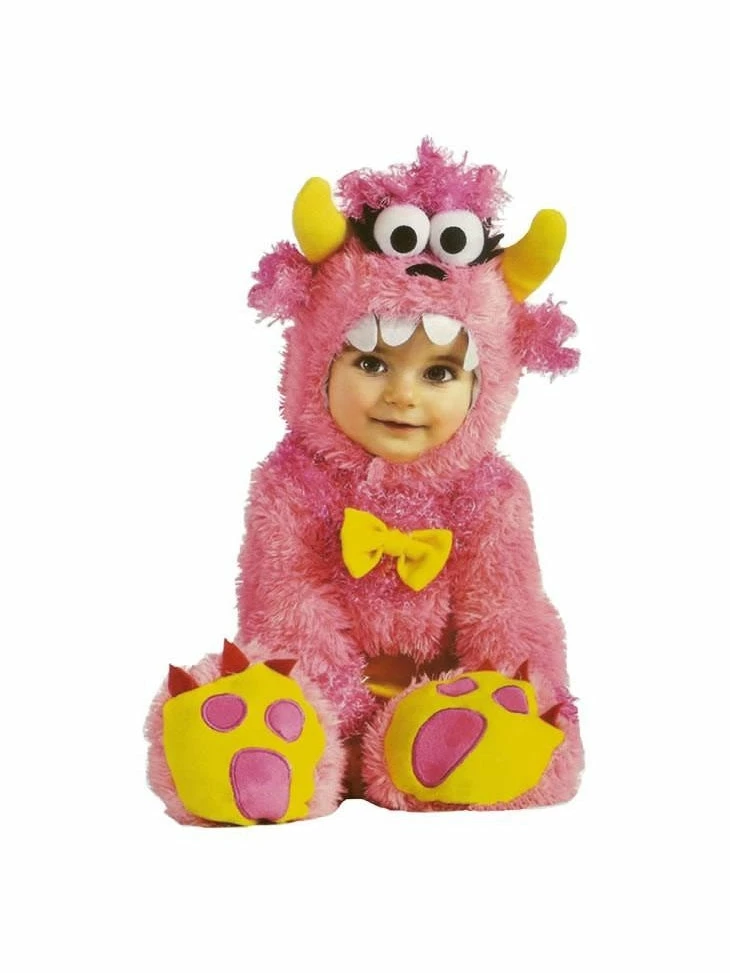 This adorable infant monster costume features fuzzy romper with attached footies, horns, and bow tie.