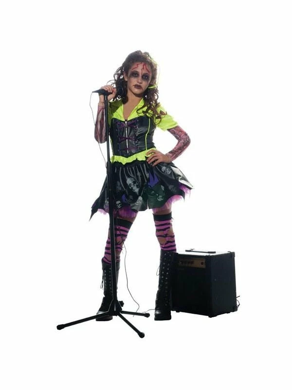If the 1980’s taught us anything its that punk rock and the undead go hand in hand. With a chic blend of neon green, hot pink, and gothic black this zombie outfit is ready to take the stage and sing new wave punk jams until the end of forever.