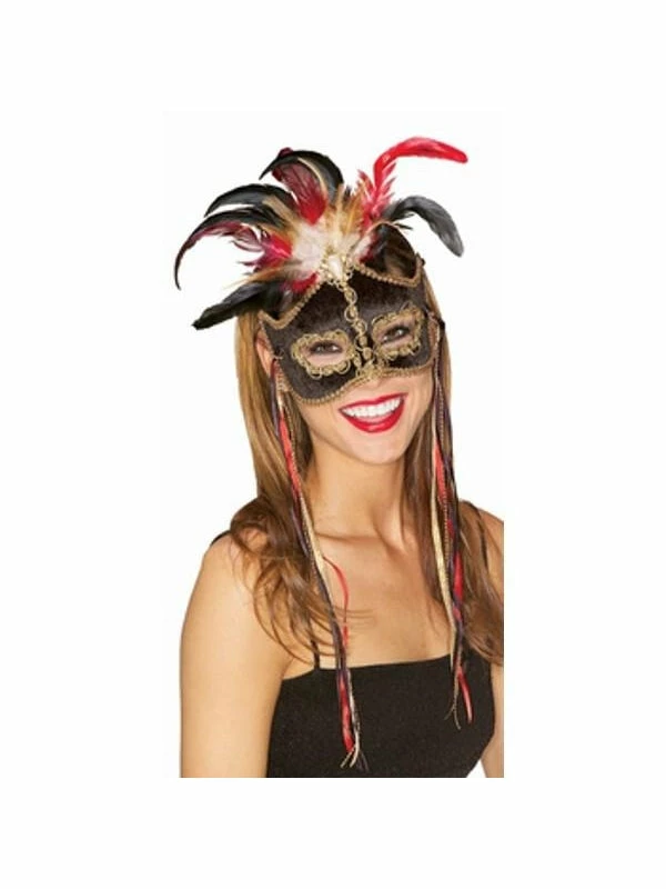 - One black Venetian mask with feathers