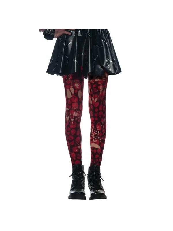 Complete your zombie costume with all the accouterments. These tattered tights have bright red skulls that compliment most any zombie outfit.