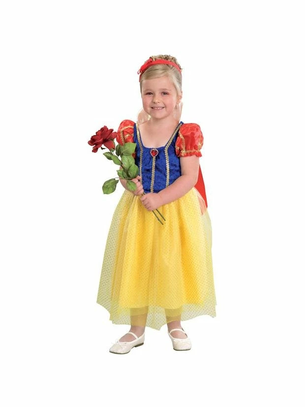 Our fairytale princess costume makes a great Snow White dress. Traditional blue, red, and gold colors make this dress perfect for your child’s Snow White costume.