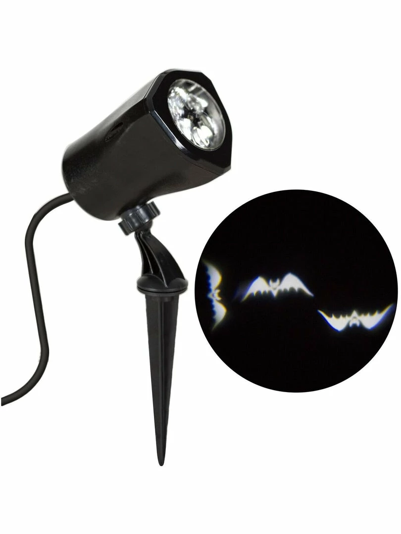 Nothing says “Halloween” quite like bats. This whirling bats projection light show runs off a/c power and projects a dancing bats light show onto walls and other flat surfaces for a dazzling Halloween display.