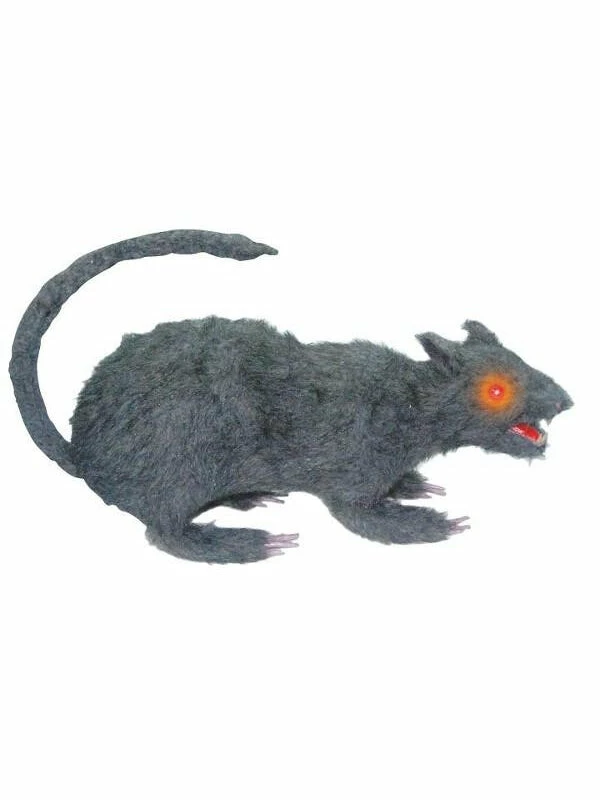 Fake rat prop for haunted houses, home, and yard decorations. This ugly fake rat is a scary prop that works great for any spooky event.