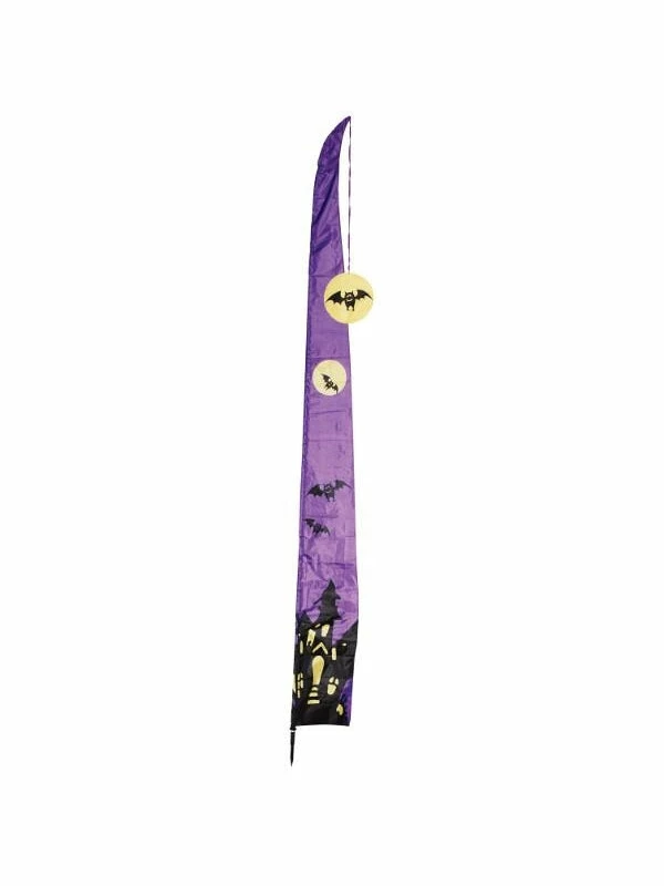 This haunted house flag makes an excellent addition to any display. With a ghastly silhouette and bats in the night sky, the flag helps give any yard a zealous spook.