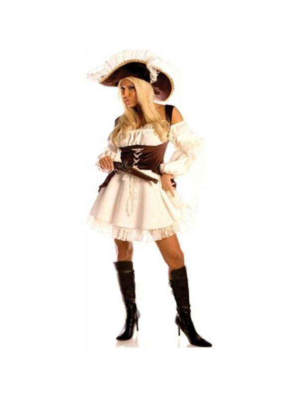 Our ladies naughty pirate dress is one sexy pirate outfit. This natural toned ladies costume is ideal for any pirate themed Halloween costume party.