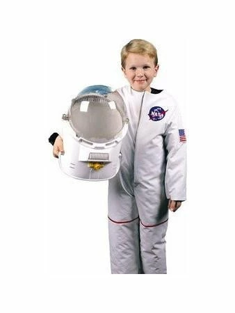 Blast Off, with our child’s Little Astronaut costume. This kid sized authentic style astronaut set includes a full body astronaut – space suit and a realistic space helmet. The suit comes complete with a genuine NASA, American flag, and Space Shuttle patches.